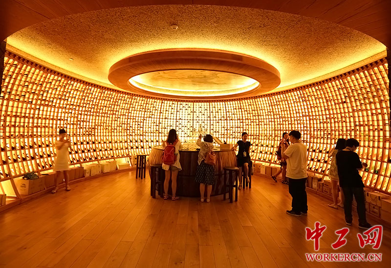 海南岛地理位置优越,气候条件成熟,理所当然成为葡萄酒的重要生产基地,采访团一行参观了位于海口综合保税区的知名葡萄酒生产企业,典型的琼州文化建筑风格和现代简约设计的大型酒窖,成为最受欢迎的“景点”。图为酒庄内部大气奢华的藏酒阁楼。   中工网记者  毛邓摄