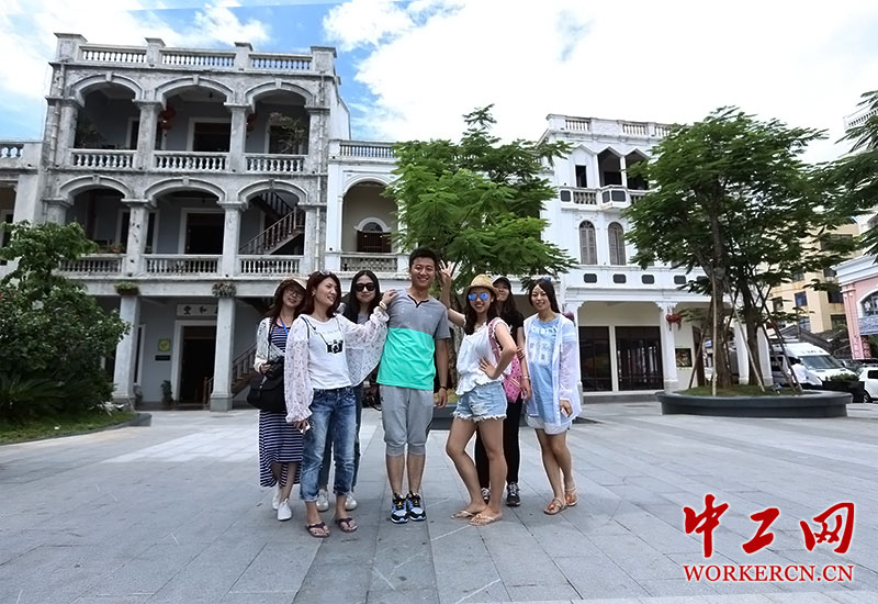 “一带一路看海南”2015全国重点网络媒体海南行采访团来到首站目的地——海口美兰机场免税店,期间记者们体验了一站式免税购物服务,并亲身感受了首届“免税节”这一特色节庆的浓郁气氛。图为同行采访记者团合影。 中工网记者 毛邓摄