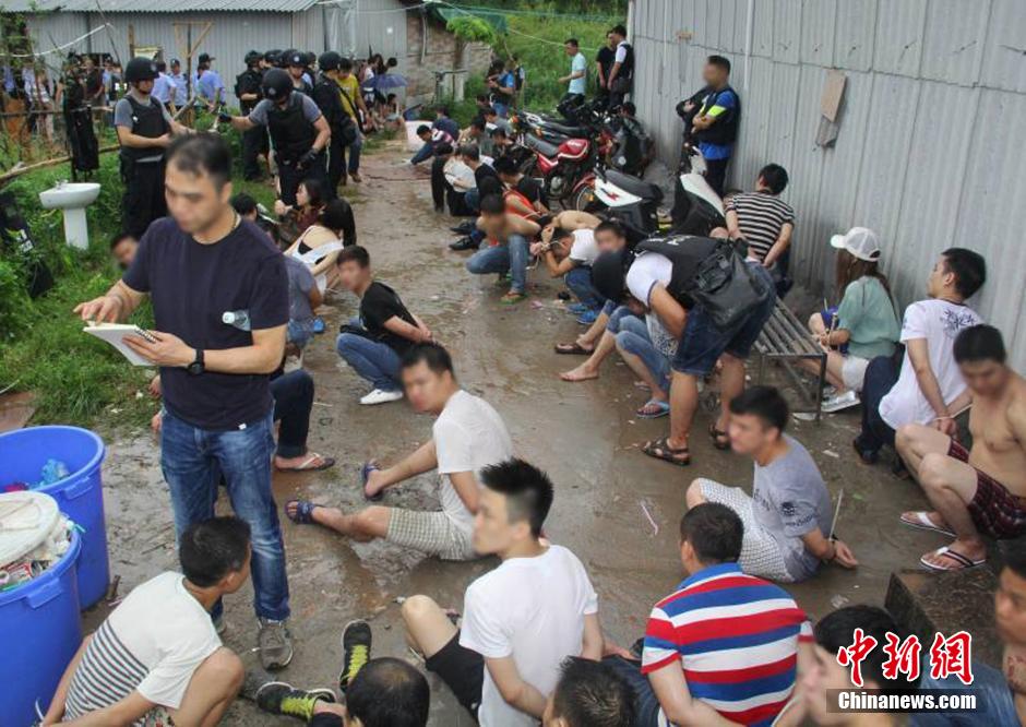 广州警方6月25日通报,警方日前出动800多名警力摧毁番禺南村一重大黑恶犯罪集团,抓获包括黑老大陈某华、邬某威在内的67名嫌疑人,一并捣毁两个特大吸毒“嗨场”,抓获128名涉嫌吸毒人员。期间出动无人机进行秘密侦查。中新社发 程景伟 摄