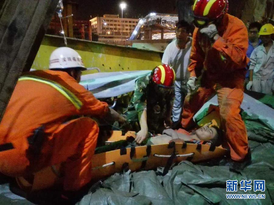 6月26日,深圳消防官兵准备将被困工人运出坍塌现场。