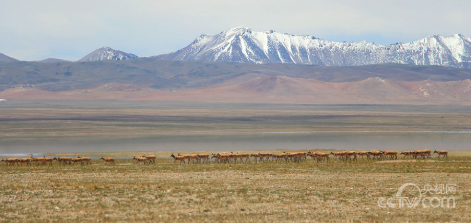 从达瓦家向北走,是可可西里国家野生动物保护区缓冲区,这里是藏羚羊的家园。这群藏羚羊全部是母羊,大概有100多只。(央视网记者 何川)