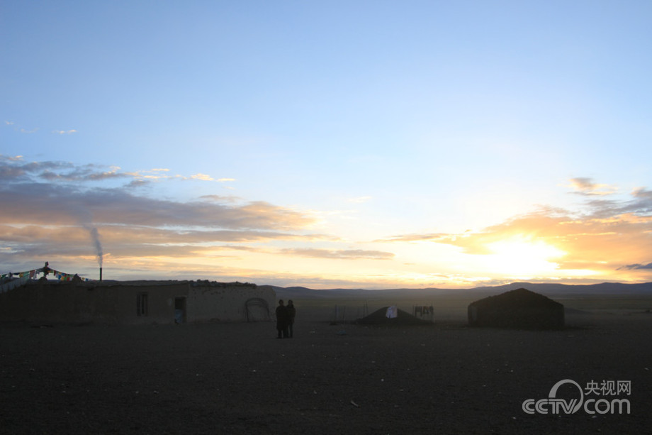 早上七点,太阳刚从地平线升起。日出而作的达瓦一家生火煮茶,燃料主要还是牦牛粪。达瓦和小儿子次旺罗布照例到羊圈查看,这个季节,羊群就在家附近的草场放牧,过段时间要去更远的放牧点。(央视网记者 何川)
