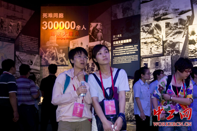 在抗日战争纪念馆,看到日军在南京犯下的滔天罪行,劳模们表情凝重。中工网记者 李雪峰 摄