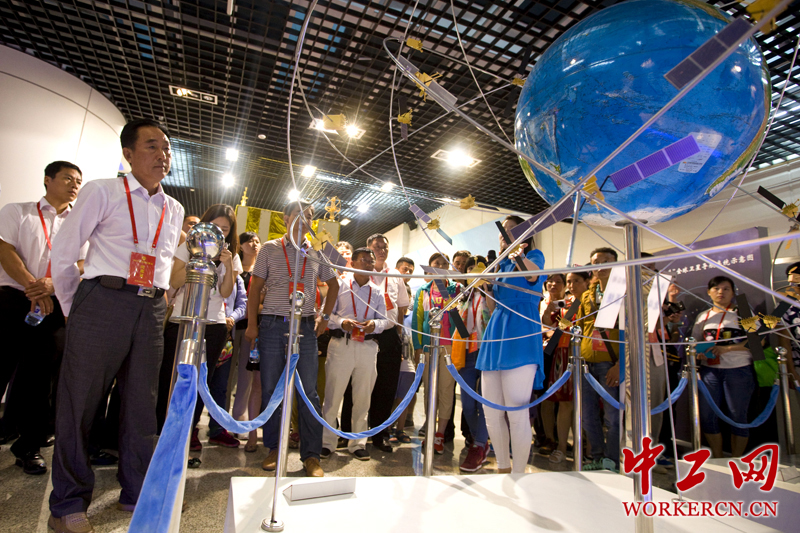 劳模们参观北斗卫星导航系统模型。 中工网记者 李雪峰 摄
