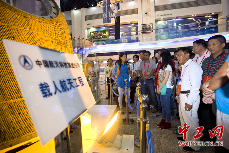 随着讲解员深入浅出的讲解,我国空间技术的发展和进步让参观的劳模们振奋而惊叹。 中工网记者 李雪峰 摄