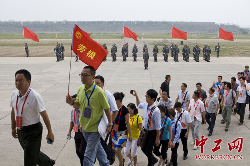 2015年7月17日上午,来自全国各地的200名全国劳动模范来到军营,观看了仪仗队表演和官兵们的模拟战术训练。