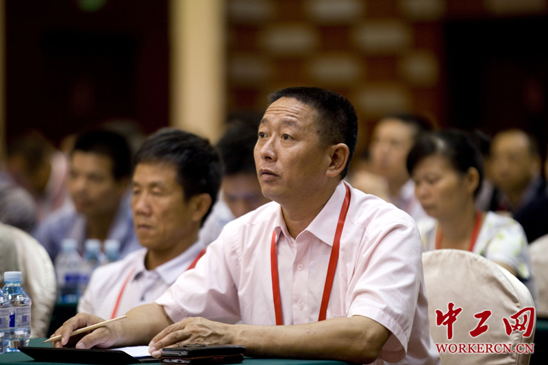 图为广东省吴川市博铺镇环卫站清洁工柴金认真听取报告。 中工网记者 李雪峰 摄