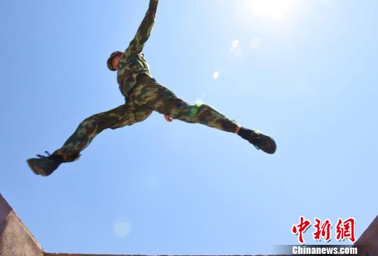 图为森警进行400米障碍跨越项目比拼。常迎迎 摄