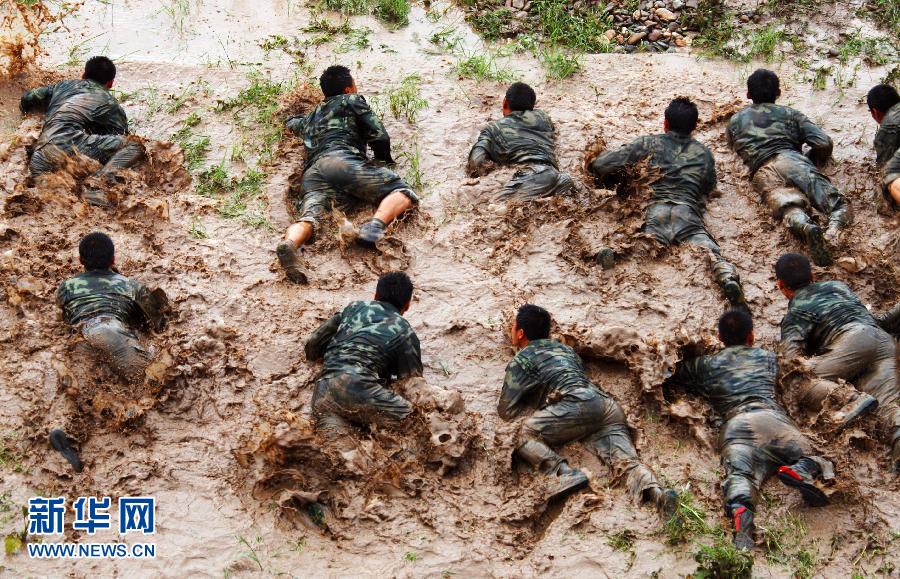 8月1日是中国人民解放军建军88周年纪念日。伟大的军队都是由一个个优秀的战士组成的,他们是怎样炼成的?让我们从照片中感受人民子弟兵成长路上的精彩瞬间。图为武警北京总队特战大队队员进行泥潭体能训练(2011年6月27日摄)。新华社发(李光印 摄)