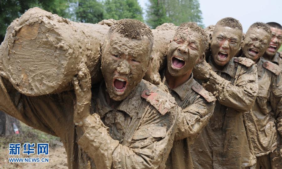 8月1日是中国人民解放军建军88周年纪念日。伟大的军队都是由一个个优秀的战士组成的,他们是怎样炼成的?让我们从照片中感受人民子弟兵成长路上的精彩瞬间。图为武警安徽总队滁州支队反恐分队官兵进行扛圆木训练(2012年7月18日摄)。新华社发(廖福安 摄)