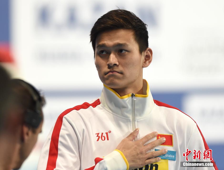 当地时间8月9日,第16届国际泳联世锦赛游泳男子1500米自由泳决赛在俄罗斯喀山市举行,中国选手孙杨退赛,未出现在赛场。图为当地时间8月9日晚,第16届国际泳联世锦赛落下帷幕,中国运动员孙杨获颁赛会最佳男运动员称号。