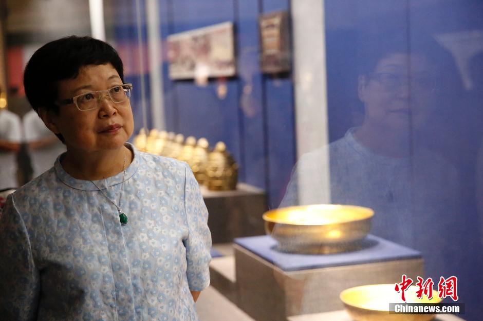 8月11日,台北故宫博物院院长冯明珠参观故宫博物院精品文物馆。中新社发 韩海丹 摄