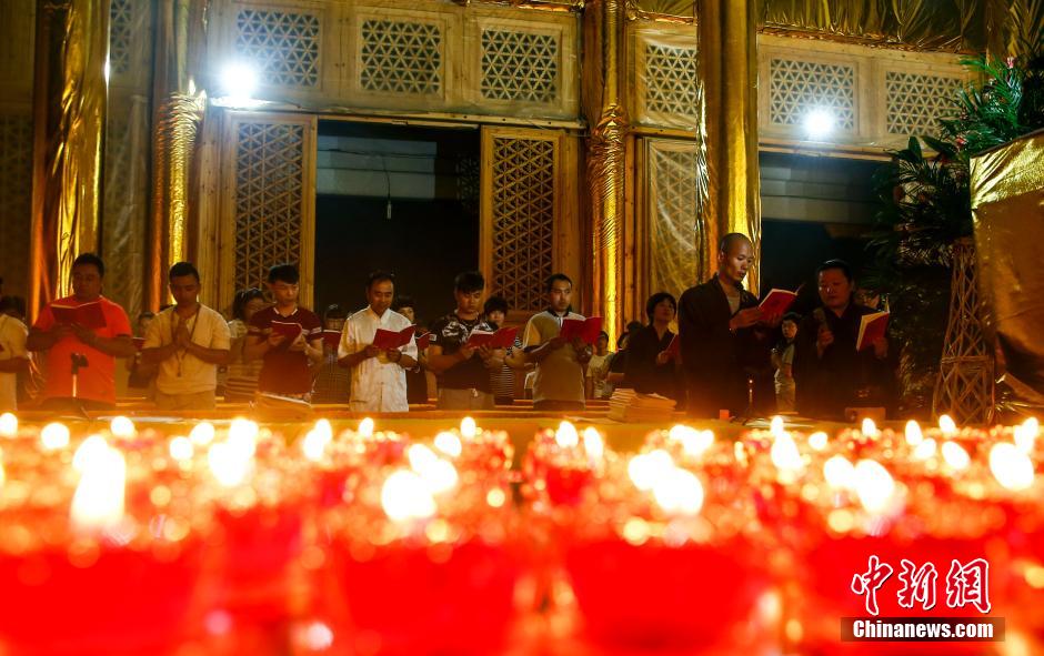 8月14日,天津民众前往潮音寺,为天津港“8·12”特别重大火灾爆炸事故的遇难者祈福。 中新社发 张浩 摄