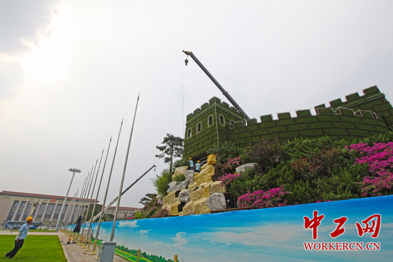 广场中心花坛以“长城”为主题,位于英雄纪念碑的北侧,分东西各一组,单组东西长60米,南北宽25米。中工网记者 张起晨 摄