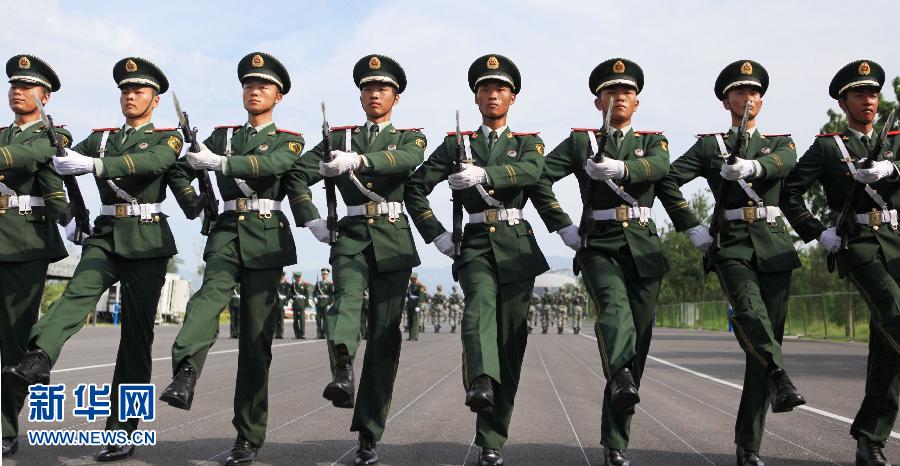 参训官兵在阅兵村进行训练(8月14日摄)。我国首次纪念抗日战争暨世界反法西斯战争胜利70周年阅兵举办在即,记者日前在阅兵训练基地采访了解到,阅兵训练有条不紊推进,各项准备工作进展顺利。新华社发(田丰 摄)