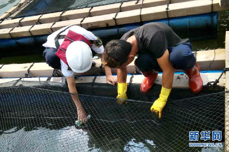 8月26日,海事调查人员在污染水域附近养殖场取水样调查。经珠海海事局组织的专业清污团队紧张作业,至8月27日,已基本清除污染庙湾岛周边海域的约200平方米的重油。目前,海事部门正在联合相关部门追查污染海域的重油来源。 8月23日起,珠海庙湾岛附近出现约200平方米的重油污染。 新华社发(冯坤摄)