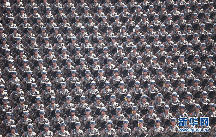 9月3日,中国人民抗日战争暨世界反法西斯战争胜利70周年纪念大会在北京隆重举行。这是徒步方队接受检阅。 新华社记者 姚大伟 摄
