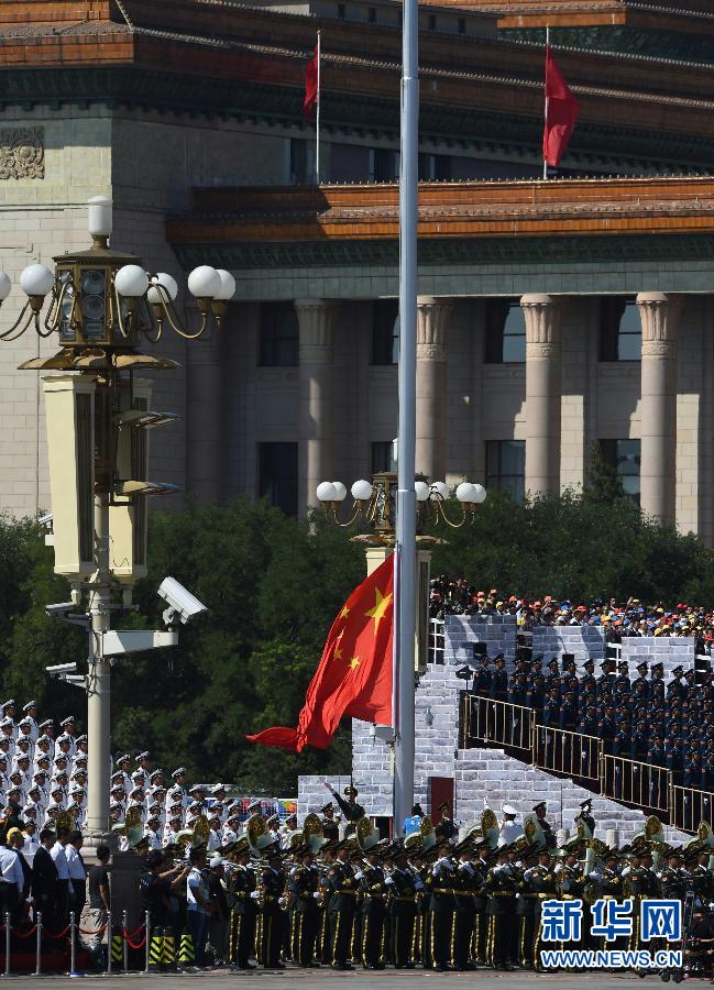9月3日,中国人民抗日战争暨世界反法西斯战争胜利70周年纪念大会在北京隆重举行。这是天安门广场举行隆重的升国旗仪式。新华社记者欧东衢摄