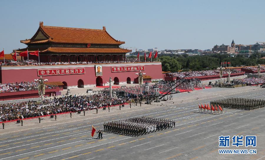 9月3日,中国人民抗日战争暨世界反法西斯战争胜利70周年纪念大会在北京隆重举行。这是徒步方队接受检阅。 新华社记者 殷刚 摄