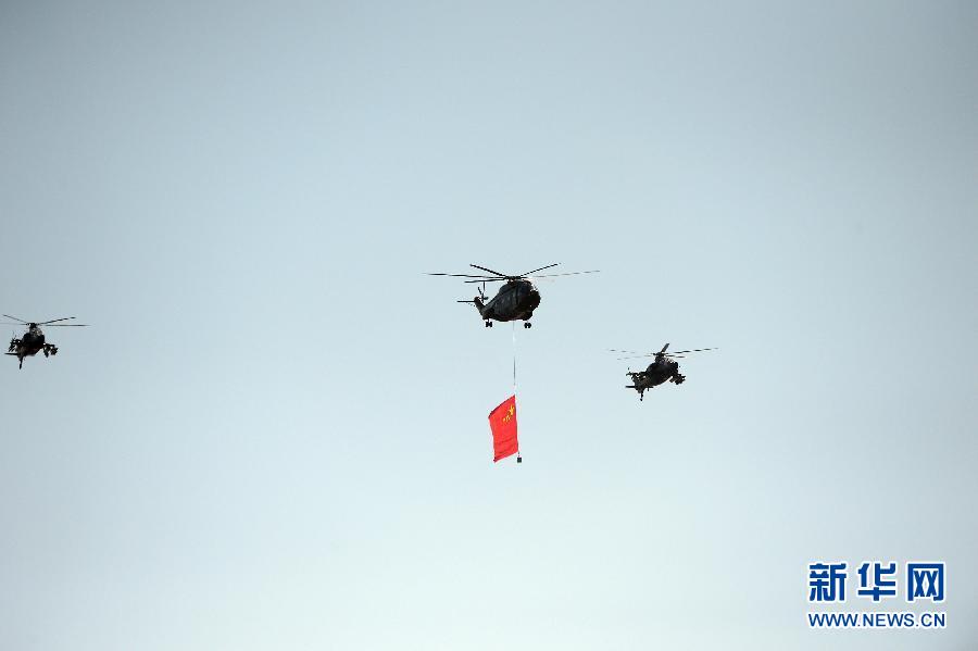 9月3日,中国人民抗日战争暨世界反法西斯战争胜利70周年纪念大会在北京隆重举行。这是空中护旗方队。 新华社记者薛玉斌摄
