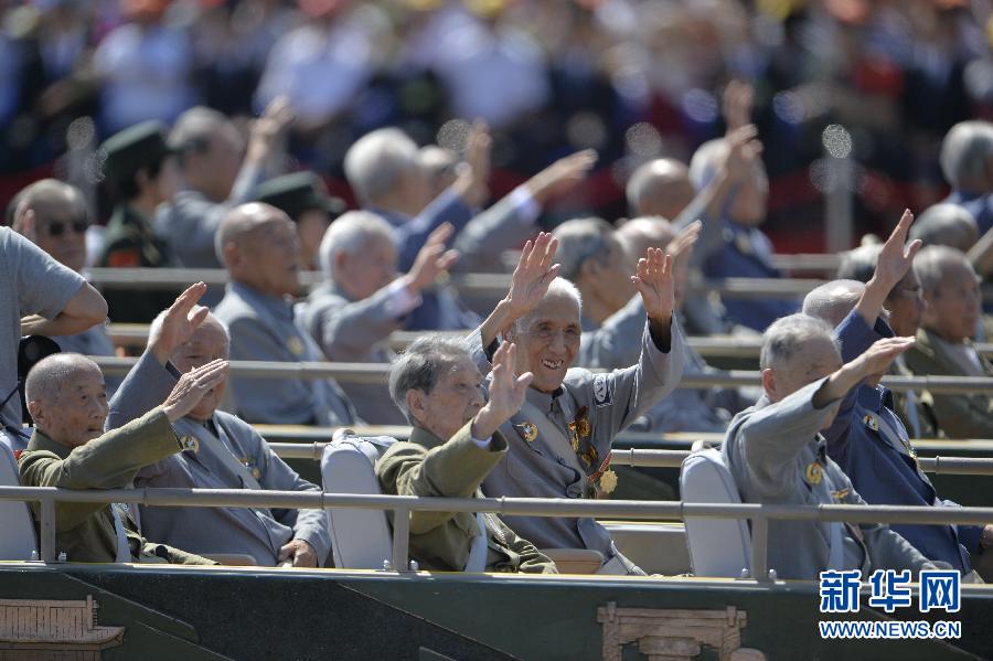 9月3日,中国人民抗日战争暨世界反法西斯战争胜利70周年纪念大会在北京隆重举行。这是抗战老兵乘车方队。 新华社记者 普布扎西摄