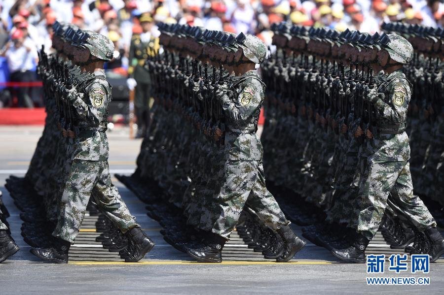 9月3日,中国人民抗日战争暨世界反法西斯战争胜利70周年纪念大会在北京隆重举行。这是百团大战“白刃格斗英雄连”英模部队方队通过天安门广场。新华社记者公磊摄