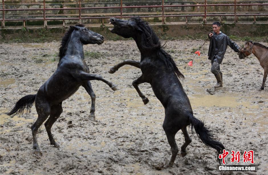 广西侗乡三江斗马节 马匹厮打为“红颜”