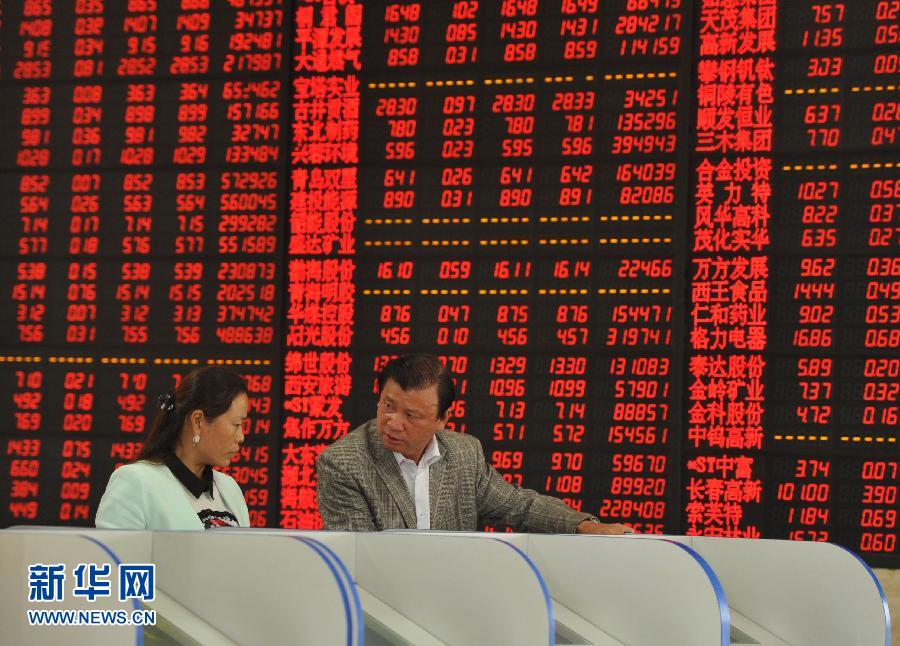 10月8日,股民在安徽阜阳市一家证券营业厅关注股市行情。截至收盘,沪指报3143.36点,涨90.58点,涨幅2.97%,深成指报10394.73点,涨406.48点,涨幅4.07%,创业板报2190.31点,涨107.64点,涨幅5.17%。新华社发