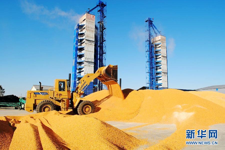 10月18日,黑龙江垦区五大连池农场烘干厂工人用铲车推运新粮准备烘干。为确保秋收顺利进行,黑龙江垦区所属农场10月以来陆续起动了380多座烘干设备,采取昼夜烘干等措施,保证新粮干燥入库,安全存储。新华社发(陆文祥 摄)