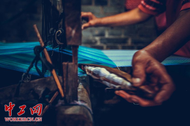 丁村——人类考古史上闻名遐迩的民俗村落。在曾经出土丁村人古人类化石的河滩上,白色的贝壳依稀可寻,人们开辟成良田种粮种棉、栽树育果。丁字形状的路口,不时有牛车驶过,胡同深处、农家院旁,黑色黄色的牛或卧或站。在一派自然祥和中,勤劳的农民在古朴的小院里休养生息,更令人惊喜的是,丁村至今还可以坐看妇女“当户织”、听闻“轧轧”机杼声,沿袭着北方劳动人民许多古老的生产方式。图为丁村的织布女人。 中工网记者 张起晨摄