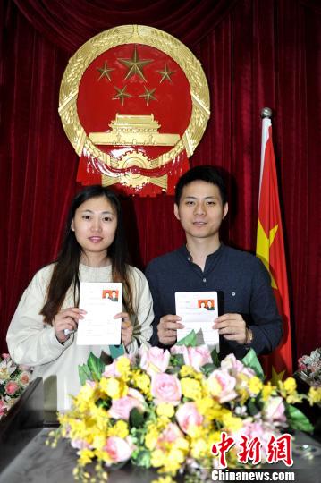11月11日,“光棍节”当天,福州许多青年到民政部门登记结婚,摆脱单身。