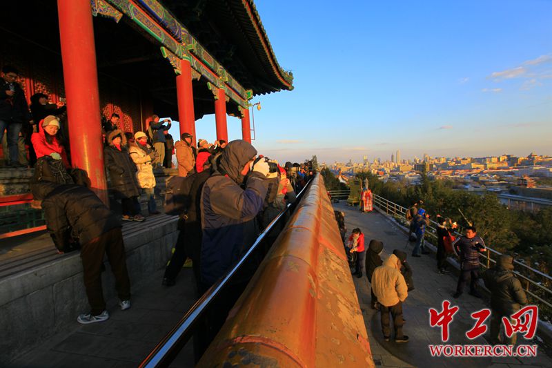 2015年11月25日,北京雪后放晴,景山公园引大批游客驻足拍照。虽然气温低下,却丝毫没有影响摄影爱好者的创作热情。中工网记者 张起晨摄