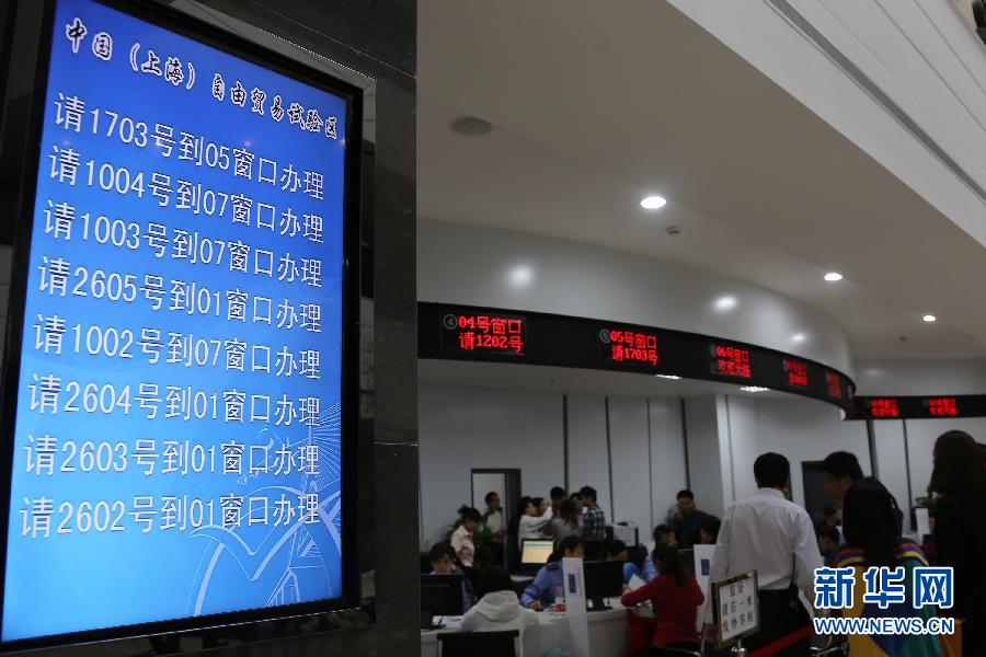 这是上海自贸区管委会大厅内的叫号办理企业登记注册的液晶屏(10月8日摄)。10月8日为上海自贸区首个业务受理日,截至上午11时30分,共有880人次咨询办理,其中约260人次直接办理企业登记注册。新华社发(杨世超 摄)