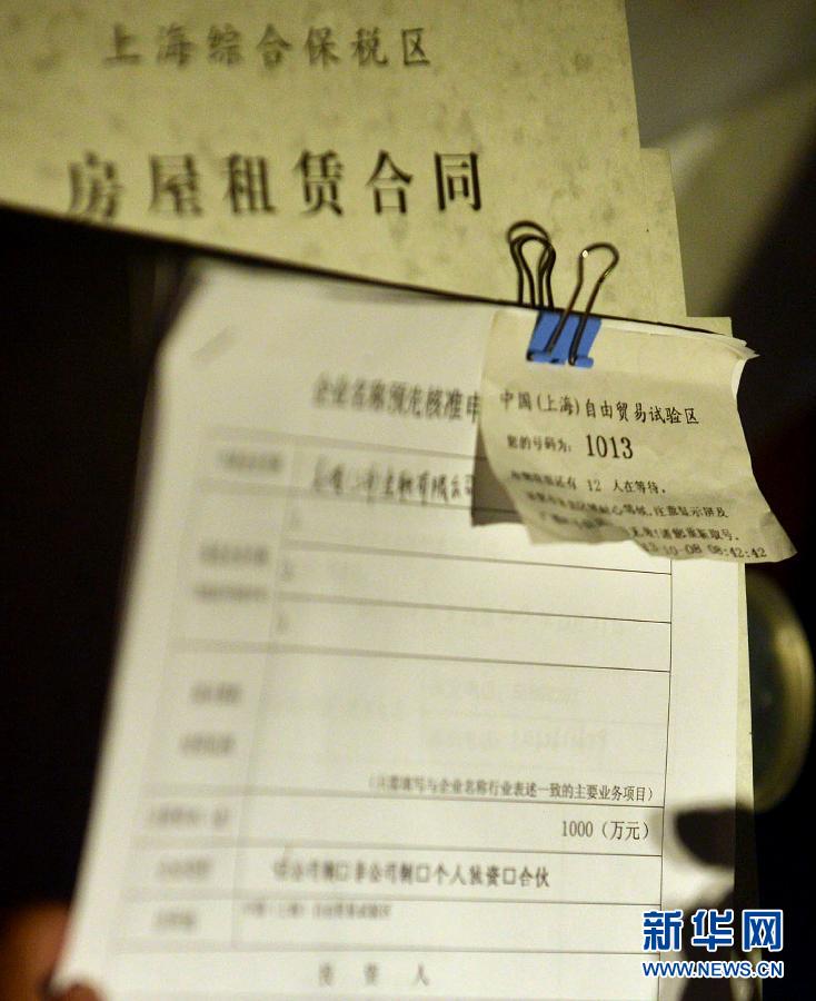 这是一位申请者为办理相关业务所准备的材料(10月8日摄)。10月8日为上海自贸区首个业务受理日,截至上午11时30分,共有880人次咨询办理,其中约260人次直接办理企业登记注册。新华社发(丁汀 摄)