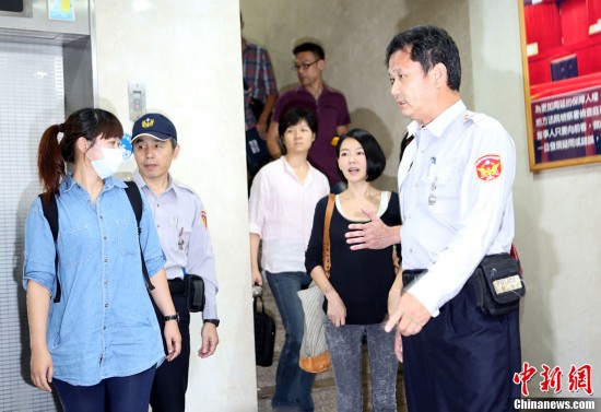 10月11日,台湾当红艺人(右2)小S(徐熙娣)11日上午为“老公”许雅钧投资的胖达人手感烘焙面包诈欺及内线交易案,被检方传唤到台北地检署作证,经过约1小时左右的侦讯后离去,吸引大批媒体记者在场拥挤采访。陈立宇 摄