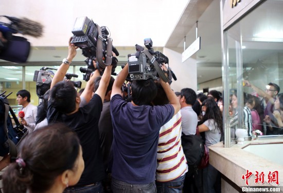 10月11日,台湾当红艺人小S(徐熙娣)11日上午为“老公”许雅钧投资的胖达人手感烘焙面包诈欺及内线交易案,被检方传唤到台北地检署作证,吸引大批媒体记者在场拥挤采访。陈立宇 摄