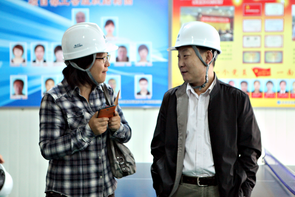项目经理杨富强作为先进代表回答了在场各家媒体的提问,对于南水北调工程的建设情况,青年突击队的团队建设,在职工的精神文化建设和生活关怀方面制定的具体措施做出了详细解答。图为在东干渠施工现场的移动板房,媒体记者询问工会于士瑞主席当前职工小家活动开展的情况。 中工网记者 毛邓摄