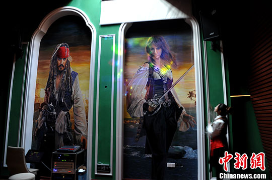 10月15日,以著名电影《加勒比海盗》为背景打造的“海盗船”主题餐厅亮相安徽合肥。该餐厅的“船长”由一位80后女服装设计师担当。中新社发 韩苏原 摄