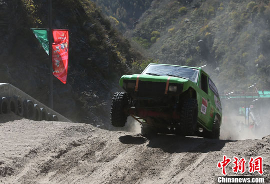 10月19日,“争霸·天下第一坡”越野挑战赛暨中国首家山地人工沙化赛道揭幕战在北京房山大安山乡隆重举行。中新社发 谷春宝 摄