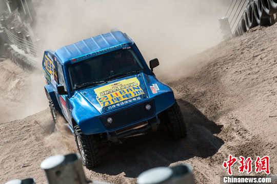 10月19日,“争霸·天下第一坡”越野挑战赛暨中国首家山地人工沙化赛道揭幕战在北京房山大安山乡隆重举行。中新社发 谷春宝 摄