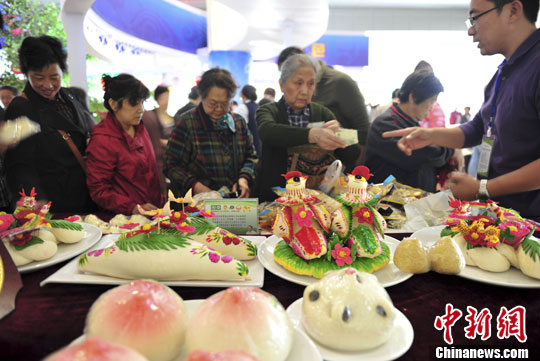 10月19日,市民购买有机馒头。中新社发 张勇 摄