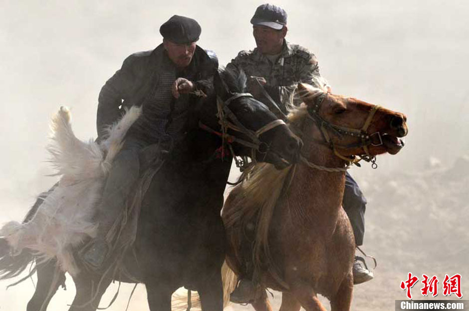新疆罗布人村寨举办精彩骑马叼羊大赛