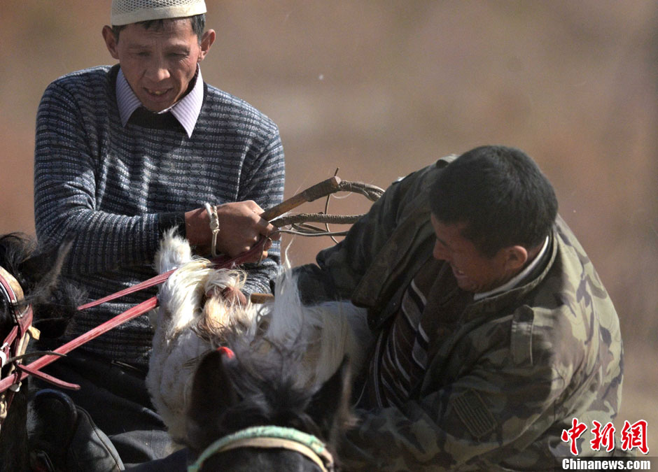 新疆罗布人村寨举办精彩骑马叼羊大赛