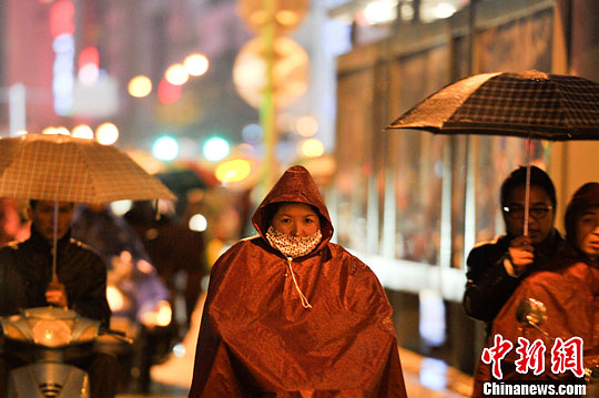 10月23日,连绵的秋雨让昆明气温骤降,众多市民穿起了厚厚的冬衣御寒,春城“提前入冬”。中新社发 刘冉阳 摄