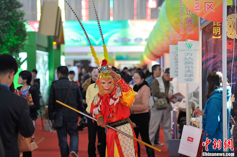 10月24日,孙悟空亮相旅交会,向观众推介昆明西游洞景区。当日,2013中国国际旅游交易会在春城昆明开幕,102个国家和地区参展推介旅游。中新社发 刘冉阳 摄