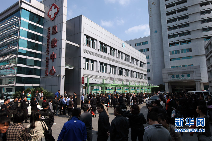 10月25日上午,浙江台州温岭市人民医院医护人员正在竭力抢救被歹徒捅伤的数名医生。当天,该院发生一起故意伤人案件,犯罪嫌疑人连恩青持刀闯入医院,接连捅伤数名医生,后被制服。目前事件已造成一名医生死亡,另两名医生重伤经抢救脱离危险。