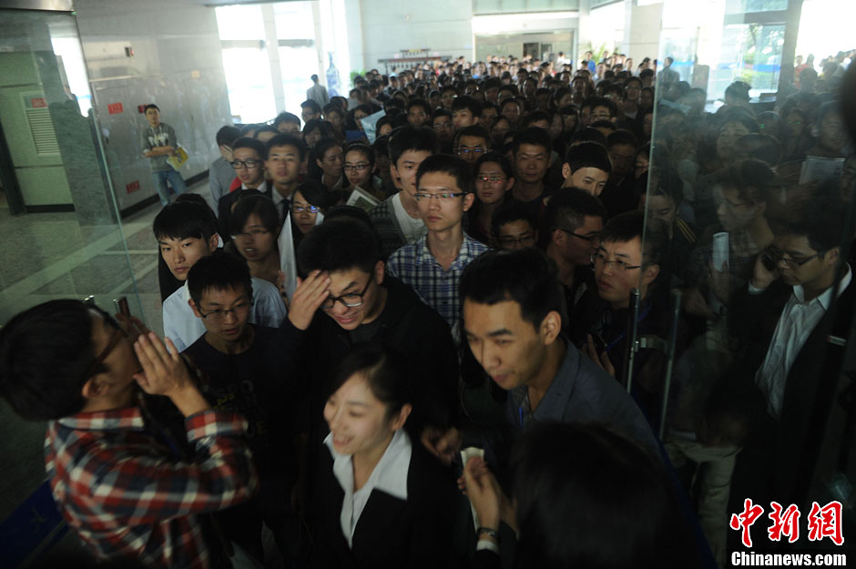 10月25日,重庆大学学生们排队进入招聘会现场。“两江名企高校行”活动正式启动。“两江名企高校行”首站是重庆大学,包括研发工程师、质量工程师、机械设计技术员、CNC工程师等370个岗位供学生选择。据悉,在未来2个月内,来自两江新区的17家知名企业将组团走进川渝两地18所高等院校,举行9场招聘会和双选会,抛出1500个岗位招贤纳才。