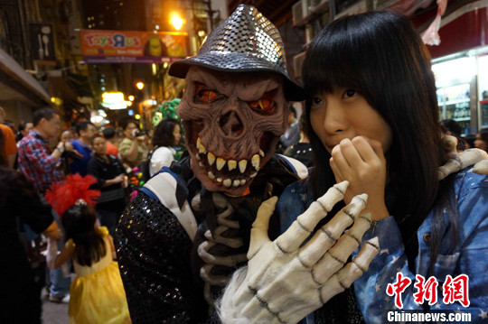 图为香港最大的万圣节哈啰喂街头派对热点——兰桂坊。中新社发 洪少葵 摄
