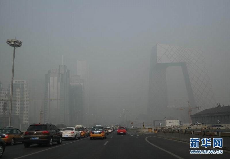示,北京城区和郊区的所有环境评价点的空气质量均显示为五级重度污染。新华社记者罗晓光摄