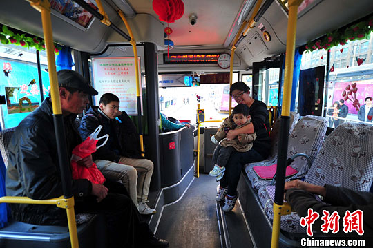 11月4日,乘客坐在安放有暖坐垫的公交车。中新社发 于海洋 摄